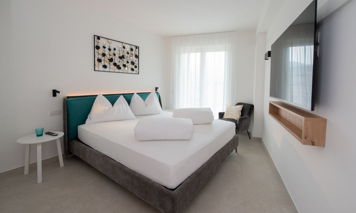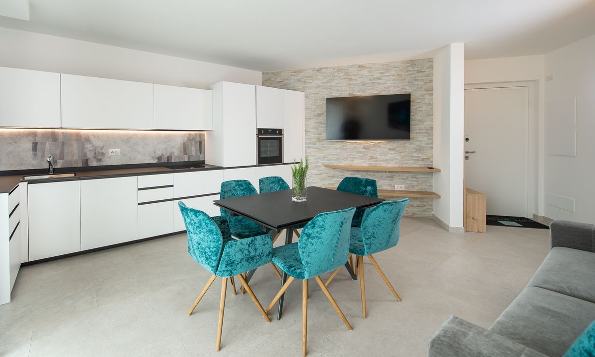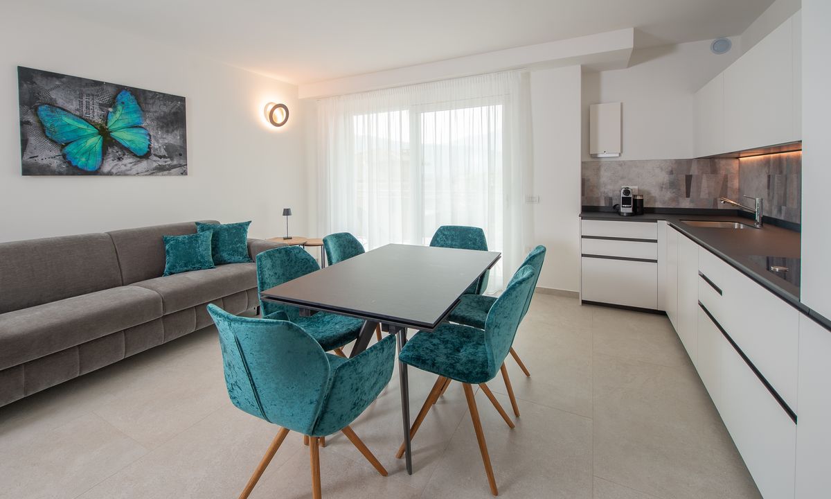 75 m² für zwei bis fünf Personen: Diese Ferienwohnung im Ortskern von Riva ist nicht nur ausgezeichnet für Ihren Urlaub gelegen – sondern auch so ausgestattet. Zwei Schlafzimmer, eines mit Doppelbett und eines mit Stock- und Einzelbett. Ein Badezimmer mit Dusche, WC und Bidet. Und eine geräumige, voll ausgestattete Wohnküche mit Küche, Esstisch und Couch. Stilvoll eingerichtet strahlt die Butterfly Suite echten Wohlfühlcharakter aus – und ist die ideale Basis für Ihren individuellen Urlaub am Gardasee.